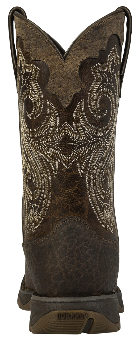 - Square toe and collar and pull straps with faux shaft