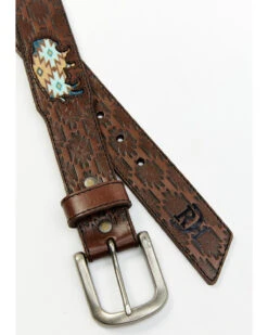 Heritage Leathers Men’s Brown Southwestern Stitched Western Belt